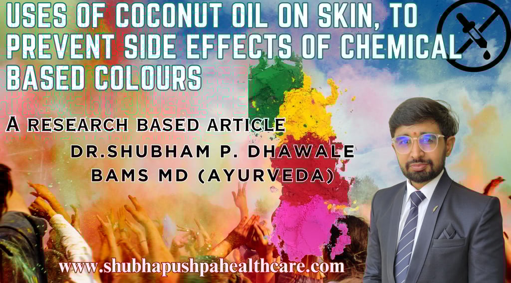 Protect your skin naturally this Holi with the power of coconut oil! Chemical-based colors can cause irritation, dryness, and allergies, but coconut oil forms a protective barrier, deeply hydrates, and prevents skin damage. Backed by Ayurvedic wisdom and scientific research, this simple skincare tip ensures a safe, skin-friendly celebration. Discover how to use coconut oil effectively before and after Holi for healthy, glowing skin. Read more: Shubhapushpa Healthcare™